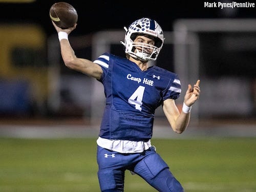 After a 5-5 regular season, the Lions were seeded fourth in the PIAA District III 2A playoffs, and visited top seed Annville-Cleona to win 35-14 against the Dutchmen for a four seed over one playoff upset that some people smelled brewing before the game. They went on to pay their second season visit to arch rival Trinity, where the Lions turned out a historical 20-13 District title win. Hours after their boys soccer team won the state title, Camp Hill hosted West Catholic to win 32-26 against the Burrs, and ultimately visited Dunmore in the PIAA quarterfinals, and lost 41-25 on Black Friday. It takes pieces to make a run like that, especially after a 5-5 regular season. My preseason Capital MVP, Drew Branstetter, has been huge in his years as the Lions starter, using top targets and fellow incoming seniors Noah Doi and Alex Long, who will be huge again in 2024. Also on that list is AJ Serdar, who had his breakthrough season last year as a sophomore, grabbing 19 receptions for 159 yards. Camp Hill loses a solid array of skill, headlined by Gettysburg College freshman running back and wrestler Kobe Moore, but also includes Tommy Corbin, Luke Becker and Marcus Colson. As mentioned previously, Branstetter went down with a week four injury against Big Spring calling in Kobe Moore to play quarterback for the remainder, and a week five game to Middletown, a loss and Middletown’s only win. This year, the Lions will have backup QB Hayden Ziegler on the roster, who will play receiver but fill in under center if necessary. The Lions schedule gets a lot easier in 2024, and the only predicted losses are their non-conference game against Lancaster Catholic and the abovementioned Juniata.